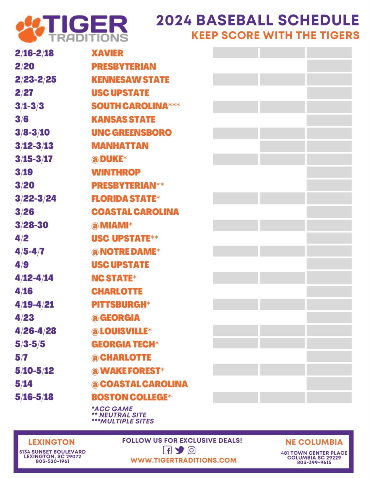 Printable 2025 Clemson Tigers Baseball Schedule Clemson Tiger